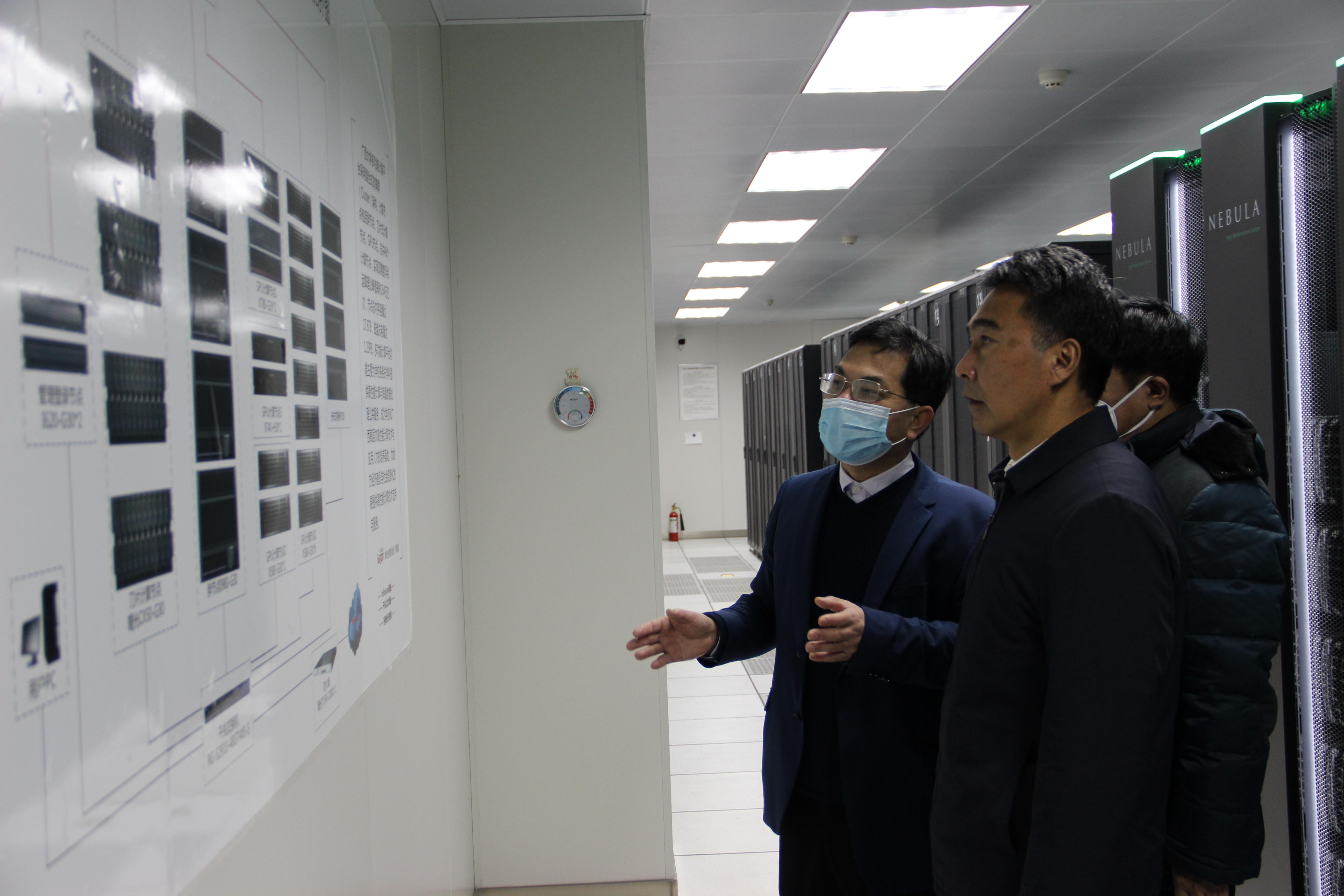 王乃学书记一行视察了依托无码视频 建设管理的无码视频 超级计算中心,观看了学院科研成果展示。