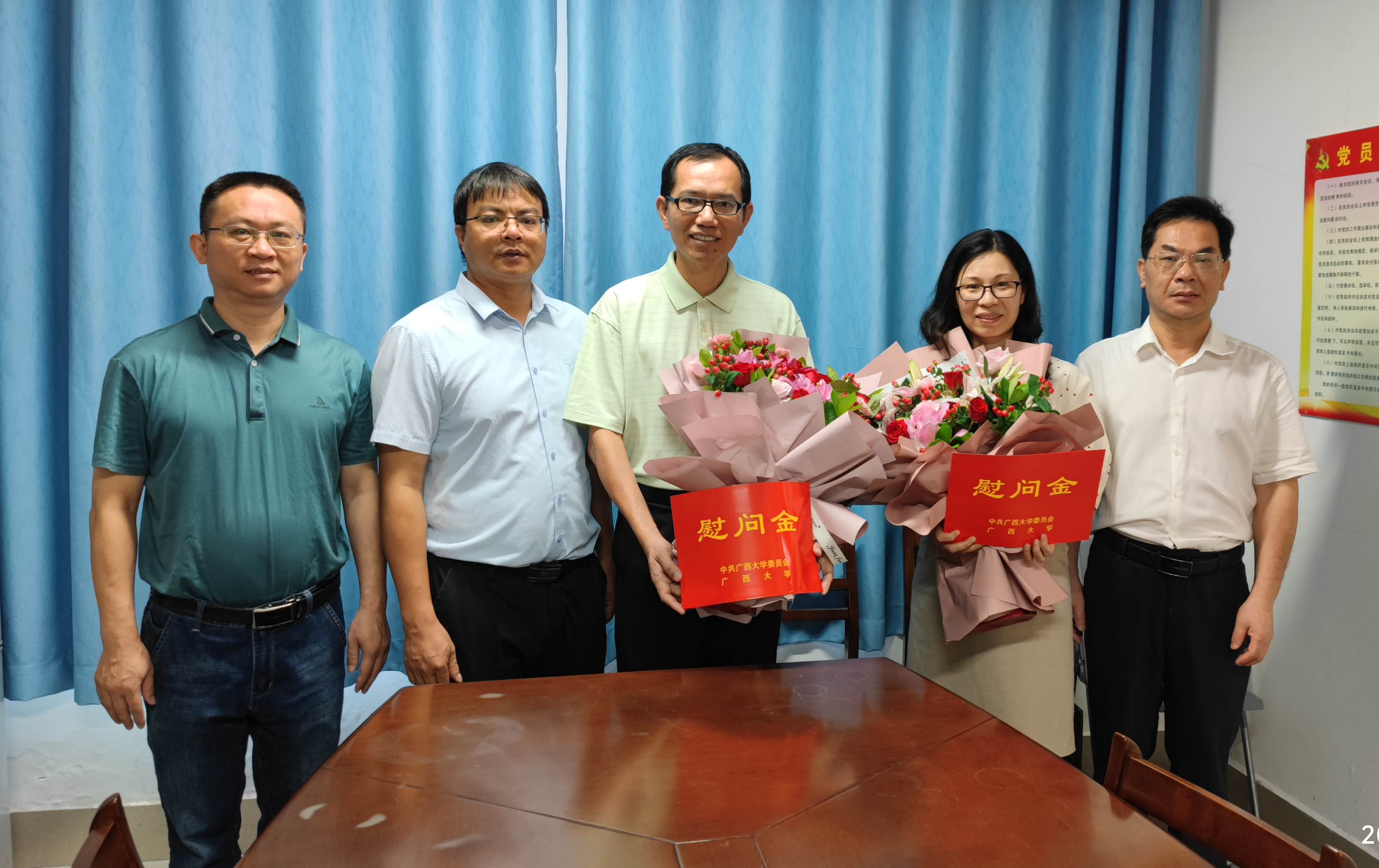 2022年9月9日上午,无码视频 在学院207会议室举行2022年教师节慰问活动,受学校领导的委托,学院党委书记钟诚、 党委副书记邓珍琪和副院长赵志刚慰问了学院教师代表李陶深、姚怡、韦巍三位老师,并通过他们向全院教师致以节日问候和美好祝愿。