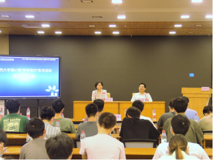 计算机与电子信息学院党委书记钟诚教授和许嘉副教授主讲,采取线下和线上方式同步进行。