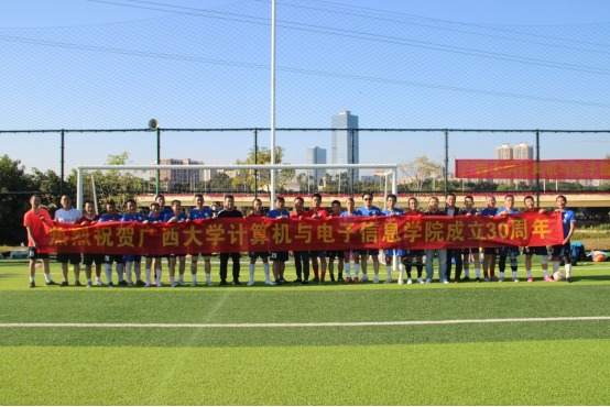 30周年院庆系列活动之校友足球友谊赛在心圩江2号足球场精彩开踢,学院校友足球队、在校生足球队,以及学院领导、辅导员老师、学生拉拉队共200多人参加。