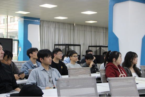 随后,董蕴辉老师对本次活动作总结发言。他首先对活动组织者和各团队表达了感谢并肯定了参赛团队项目的质量。他鼓励学生以赛促学,为创新创业注入新的活力和智慧,新时代充满机遇和挑战,希望各位同学能勇于创新、敢于突破,积极利用现有资源,发掘市场需求,推动自己的创意和项目走向实用和成功。
