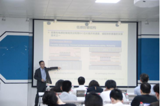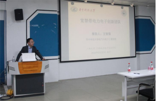 会议伊始,王智强教授给予会师生介绍华中科技大学电气与电子工程学院、宽禁带电力电子创新团队、功率半导体的纵向环节研究以及800m2国内一流的功率半导体封装集成与电力电子技术研究实验室等情况,并运用通俗的事例形象地说明电力电子技术的原理,介绍半导体材料对于电力电子变换器效率提升的重要性,讲述了半导体材料最新的发展现状以及遇到的现实难题。