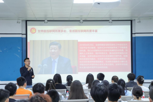 其次,班级两位同学分享网络不安全的真实案例。案例一是遭遇网络诈骗的莫蒋涛同学“现身说法”,还原自己被诈骗的完整过程,并复盘被骗的错误和疑点,进一步阐明提高青年学生鉴别信息真伪的方法和能力。案例二是苏艳婷同学分享某高校遭美国NSA网络攻击事件的案例,她全面还原了相关攻击事件的总体概貌、技术特征、攻击武器、攻击路径和攻击源头。结合两个案例,两位同学带领团员青年深入了解我国面临的网络安全的风险和挑战,引导团员青年致力于守护网络空间安全。
