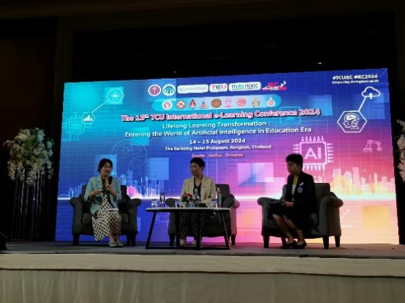 据悉,2024国际数字化教育峰会(international e-learning conference 2024)是由泰国高等教育、科学、研究和创新部下属数字大学项目(TCU)主办,联合国教科文组织亚太地区教育局、世界慕课与在线教育联盟、学堂在线、朱拉隆功大学等协办。峰会聚焦“人工智能教育时代终身学习的变革与创新”,大会采用线下线上融合式,线下约150人,线上约650人参加了大会。开幕式上,来自中国、美国、俄罗斯、马来西亚、日本等各联盟国的主要成员做了报告。