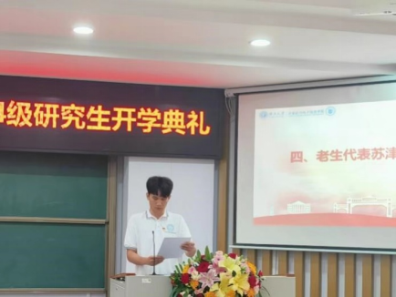 2023级计算机技术专业的苏津同学作为老生代表发言。他结合自己一年以来的研究生学习生活经历,向学弟学妹们提出建议:在科研工作中不要有畏难情绪,面对挑战时要保持从容与信心;珍惜时间,充分利用学院提供的资源,提升自己的研究能力和专业素养;平衡学业与生活,注重身心健康和人际关系,积极参与课外活动。