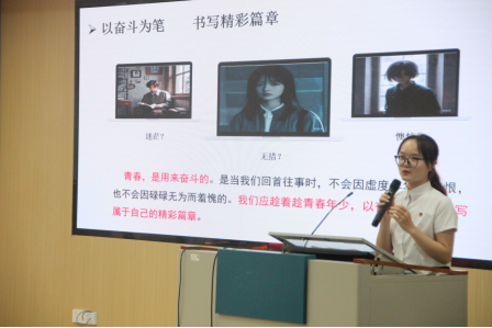 “00后”君武青年讲师团成员莫愿芝同学作题为“以青春之名,扬奋斗之志”的主题宣讲,她号召同学们以先辈为榜样,将个人发展紧密融入国家需求之中,努力奋斗,实现自我价值。