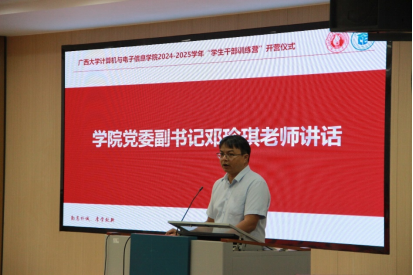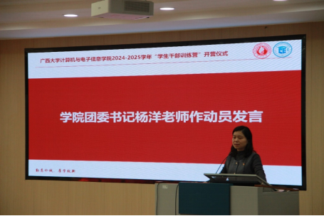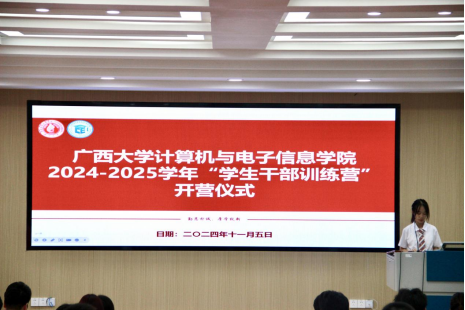 2024-2025学年学生干部训练营开营仪式在214报告厅举行,学院领导、辅导员、学校研究生会代表以及全体参训学员共计180多人参加仪式,仪式由计科232班梁舒琦同学主持。
