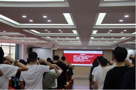 第五项议程,全体参训学员庄严宣誓:“我将秉承‘勤恳朴诚 厚学致新’的校训,以全心全意服务同学为宗旨,严守校纪校规、提高自身素质,树立干部形象、加强自我管理,以奋斗姿态激扬青春,做好老师的助手,做好学生的榜样,不负青春,不负韶华!”