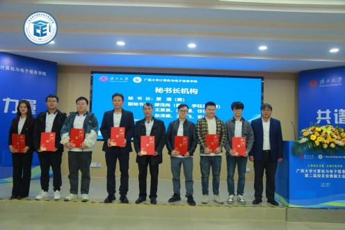 学校校友工作办公室主任周海斌和学院领导分别为新一届校友会顾问、会长、常务副会长和副会长、秘书长和副秘书长颁发聘书。