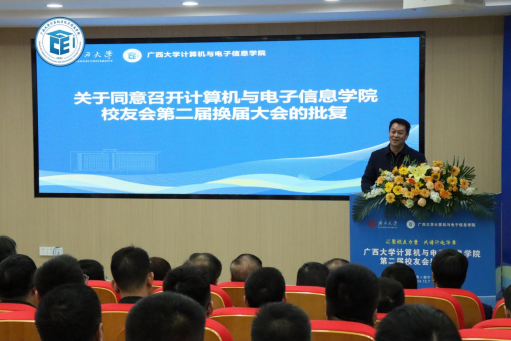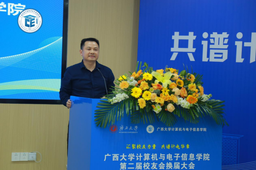 第一届校友会工作报告》。他表示,学院校友会自成立以来始终秉承“勤恳朴诚”的校训精神,致力于促进校友、校友企业之间的合作、优势互补和资源共享,不断打造校友发展“共同体”和“朋友圈”,逐步在广西区内形成一个创新交流平台。