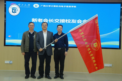 校友会第二届机构成员建议名单》。接着,学院第一届校友会副会长黎英征和第二届校友会会长吴小奕进行新老会长交接会旗仪式。