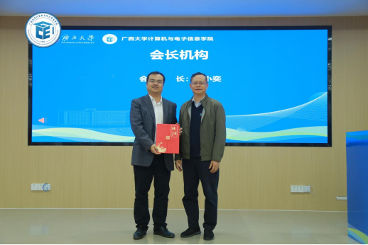 图11 学院党委副书记邓珍琪、副院长赵志刚为副会长颁发聘书