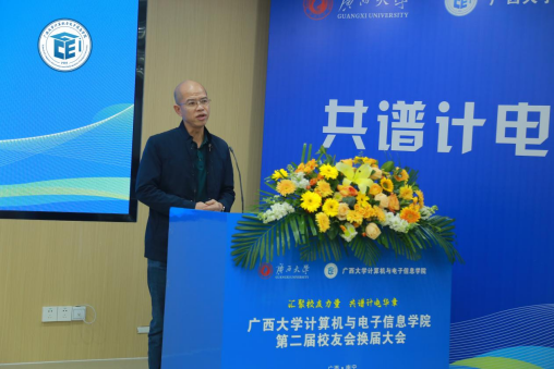 计算机应用专业1991级校友梁晓东作为校友代表发言,他感谢学院对自己多年的指导和栽培,并表示一定会秉承“勤恳朴诚”的校训,以“凝聚校友、服务校友、服务母校、服务社会”为宗旨,以身作则深耕自己的领域,不断致力于学院学科发展和校友工作,为学院高质量发展做出新贡献。