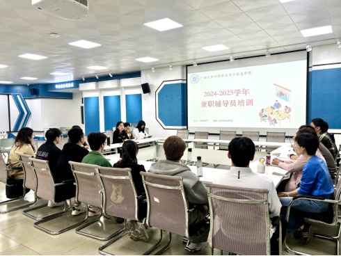 在学院一楼报告厅举办新聘兼职辅导员见面会暨岗前培训会。学院全体专职辅导员和兼职辅导员参加会议。