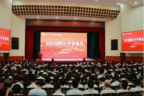 /人工智能学院2025级新生开学典礼在学校大礼堂隆重举行。843名新生怀揣科技理想与青春憧憬,正式开启作为“计电人”的成长新旅程。