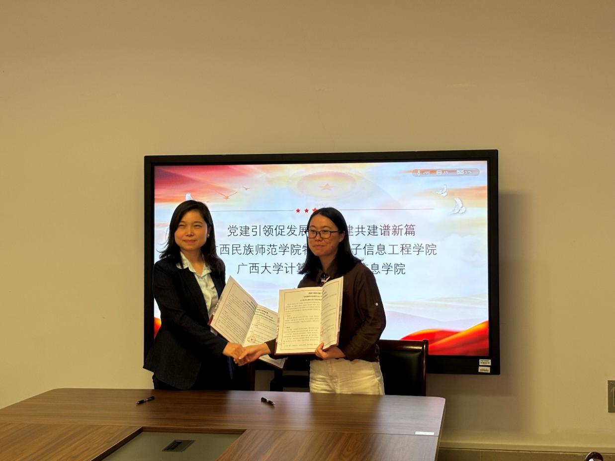 最后,学院团委书记杨洋老师围绕本科生第四党支部建设情况,分享了支部获评教育部和自治区“样板党支部”的经验做法,重点分享了支部于今年10月撰写的党建案例,围绕学生管理创新,探索高校从党员出发的人才培养模式,并介绍了“基层党建作业本”小程序、“AI辅导员”等实践做法。之后,双方举行了联建共建协议签约仪式。