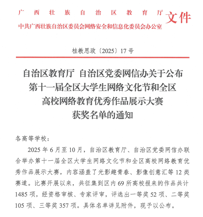 近日,自治区教育厅与党委网信办公布第十一届全区大学生网络文化节和网络教育优秀作品展示活动获奖名单。无码视频