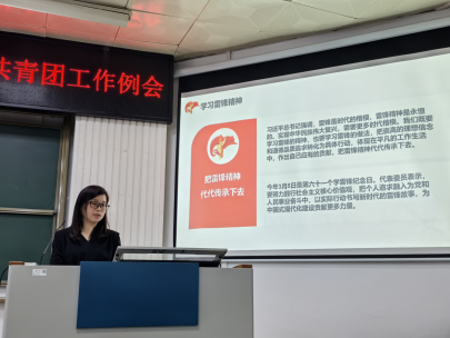 会议伊始,杨洋老师首先组织与会师生集体观看学习雷锋精神的影视资料,结合影视资料,杨洋老师为同学们讲述了雷锋的先进事迹。同时,根据学生工作的实际,她强调学生干部要以身作则,既要学习雷锋精神,也要学习雷锋的做法,要以实际行动弘扬雷锋精神,把雷锋精神融入日常的学习和工作中,争当新时代的活雷锋!