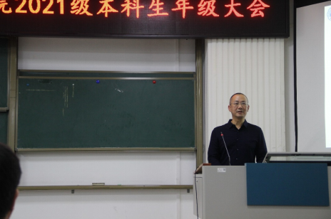 在学院214报告厅,组织召开2021级本科生年级大会。学院党委副书记邓珍琪老师、学院辅导员刘智斌老师、学院教学秘书甘瑜萍老师和罗程老师、计算机类专业213班班主任白琳老师、兼职辅导员路佳和李琳同志、以及2021级全体本科生参加会议。会议由刘智斌老师主持。