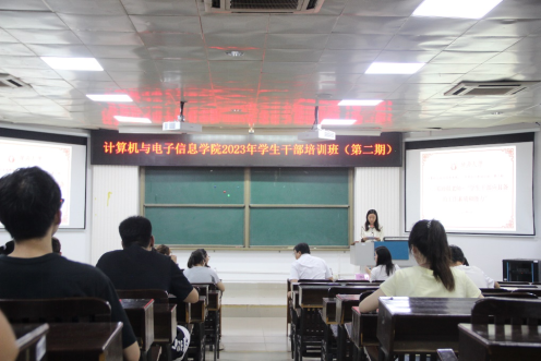 在214报告厅组织举办2023年学院学生干部培训班第二期培训。学院党委副书记邓珍琪老师、辅导员杨洋老师和李易明老师、君武讲师团的黄茜同学和刘羽祺同学,以及学院本科生、研究生非毕业班的班长、团支书、学习委员及学院团委学生会委员、研究生会全体学生干部参加培训。会议由陆雅娟同学主持。