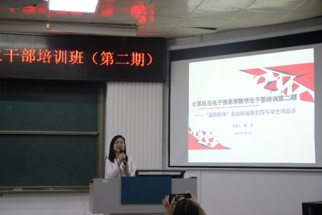 接着,杨洋老师以“学生干部应具备的道德风范——感恩、责任和担当”为主题进行讲话。她强调了作为青年学生干部的责任和担当,要积极向上,传递正能量;要感恩,要有责任担当;要敢于创新、善于创新;要抓住机遇、主动作为;要沉淀积累、厚积薄发,提升能力。